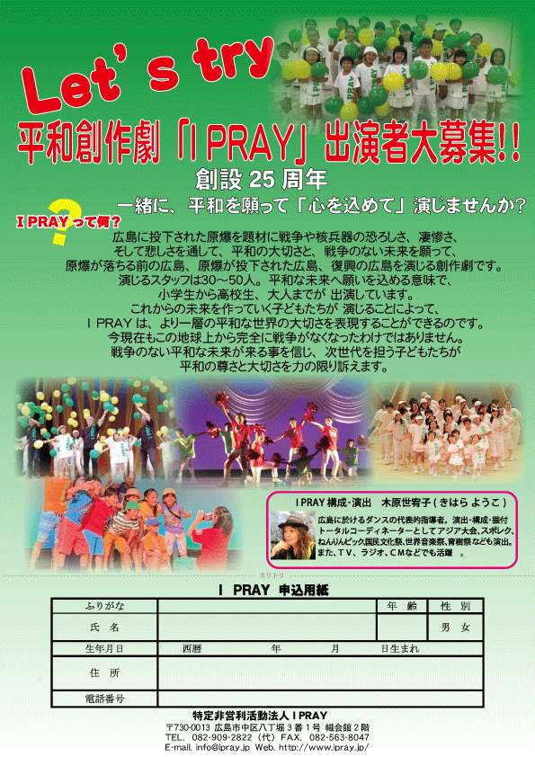 子供たちの平和創作劇 「IPRAY2020」創立25周年・被爆75周年記念行事開催決定